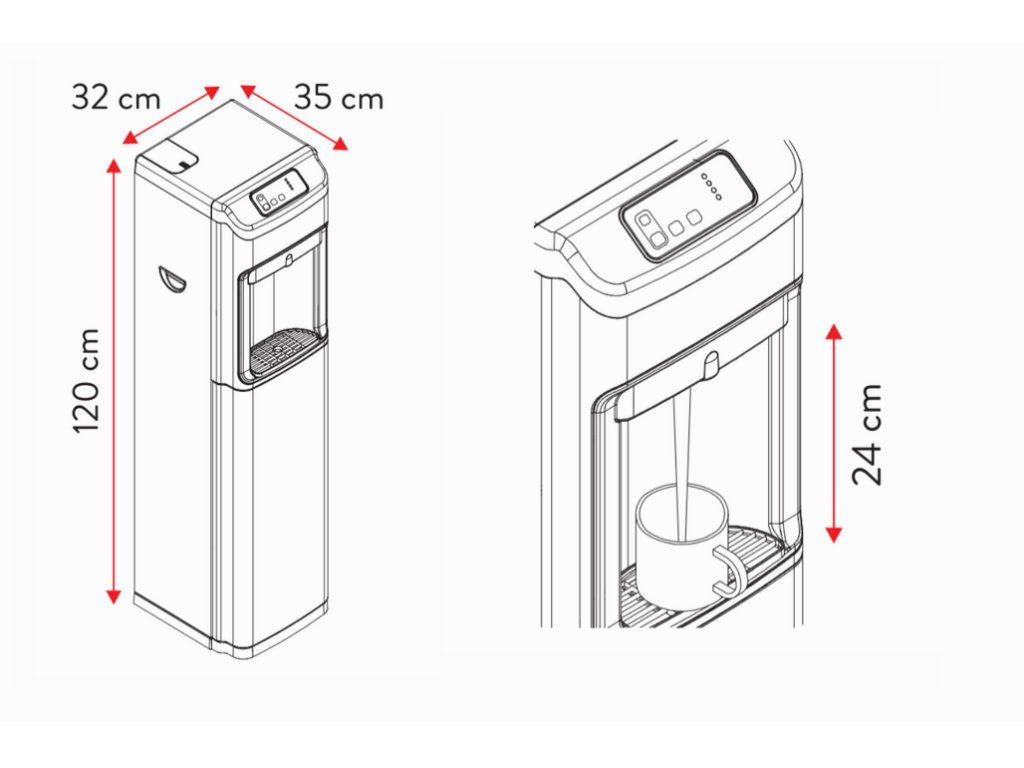 Výkon ohřevu: až 12 l/h; chlazená/perlivá: až 20 l/h.